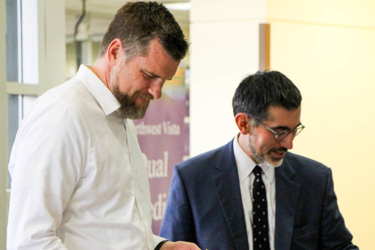 NVC’s academic deans and vice president welcome the school partners. During the training, NISD Executive Director Anthony Jarrett and NVC Academic Dean Russ Frohardt jointly addressed questions and concerns about new policies for Dual Credit.