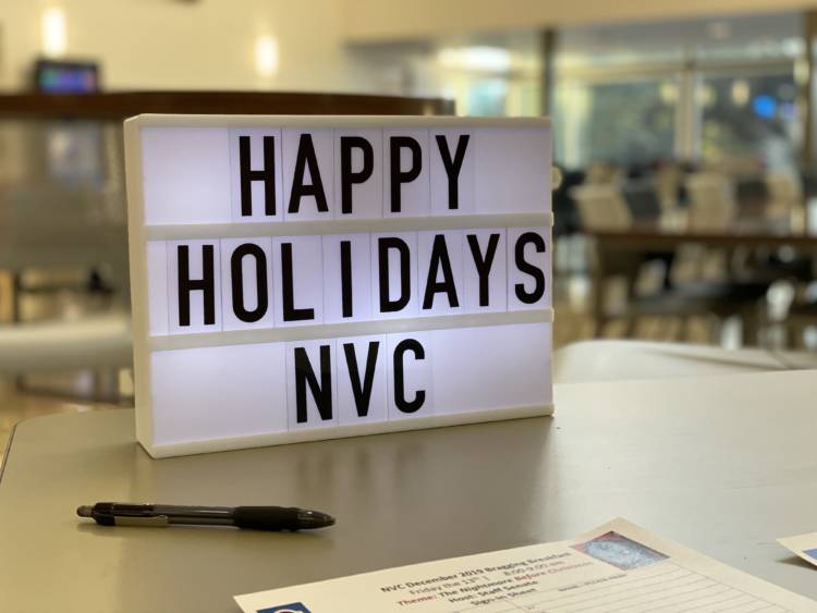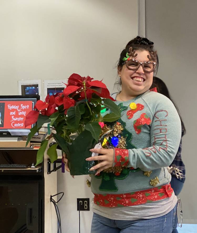 Out of 50 contestants in the “Kahoo!” holiday movie trivia contest, three movie aficionados took home prizes. In the Ugly Sweater Contest, NVC Student Success Advisor Corina Nash won for Holiday Spirit, and Academic Support Specialist Alicia Baltazar won for Best Tacky Sweater!