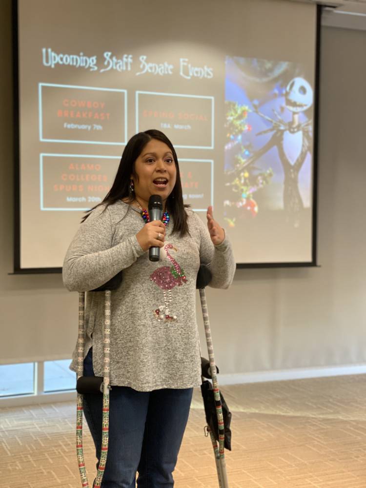 Staff Senate President Pam De La Garza discussed their upcoming events—Cowboy Breakfast on Feb. 7, Spurs Night on March 20, and a Spring Social in the spring semester. Pam also said in the spring semester, they are planning an HR series. If you have topic ideas for this series, send them to nvc-staffsenate@alamo.edu.
