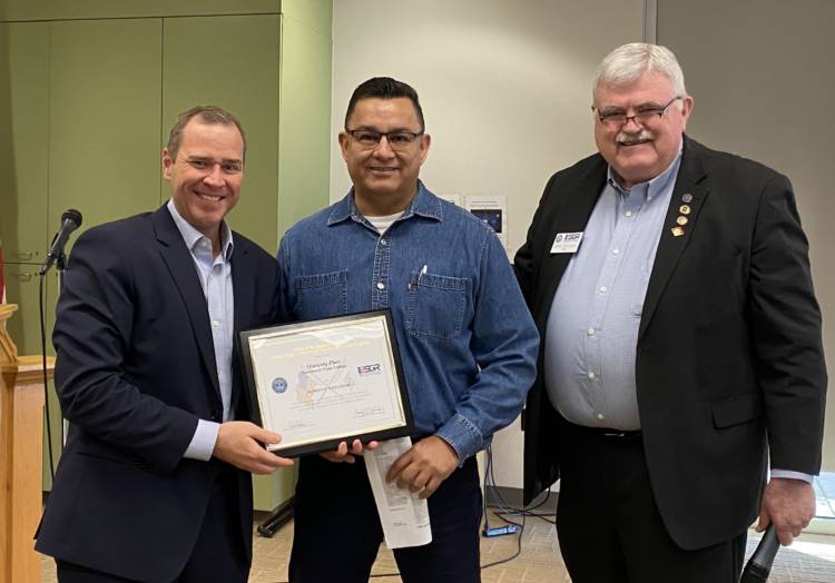 NVC Math & Engineering Chair Joy (Qiaoying) Zhou was awarded the Patriot Award – Employer Support of Guard Reserves from the Department of Defense by James Cunningham. Joy was nominated by Math Faculty Carlos Hernandez for the support she provided for his role in the Guard. NVC Vice President Daniel Powell accepted the award for Joy.