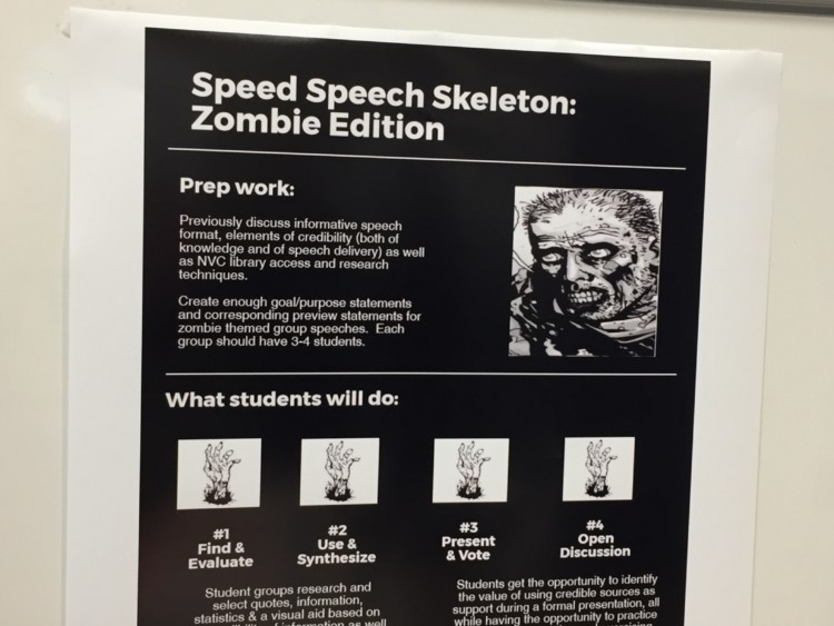 Faculty and staff began attending information literacy workshops led by the NVC librarians starting in fall of 2016. The culmination of training was the presentation of a capstone project, which had to be the creation of an assignment specific to each faculty member’s discipline with a focus on information literacy skills.
