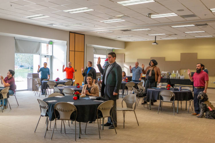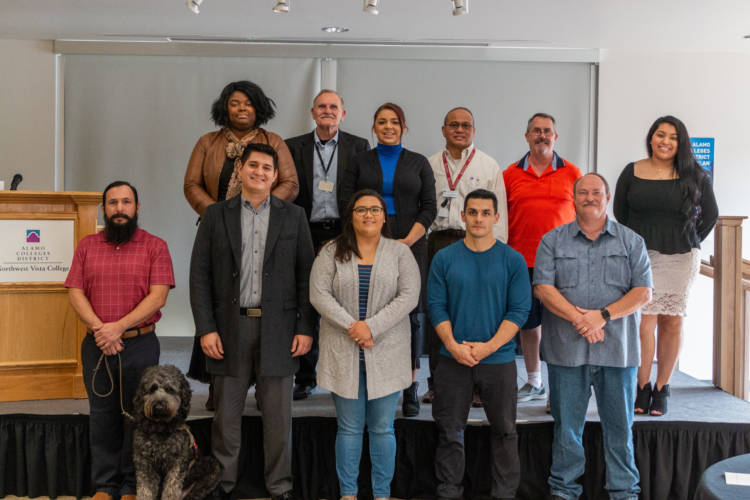 Northwest Vista College inducted 16 new student veterans into the SALUTE Veterans National Honor Society on their accomplishment of meeting the membership requirements for the organization.