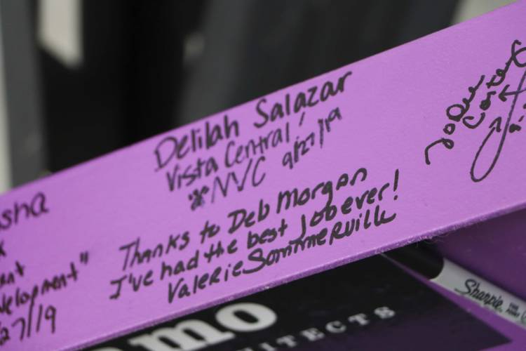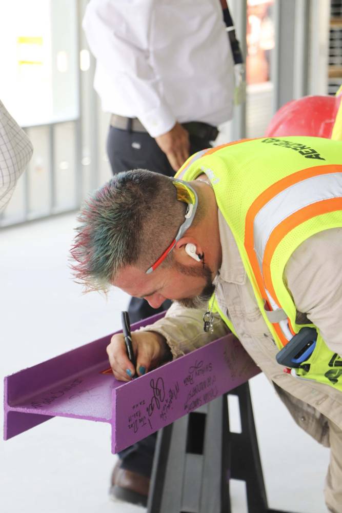 The highlight of the event was the signing by attendees of a giant purple steel beam which will be incorporated into the Welcome Center. The 50,000-square-foot center will serve as a “front door” to the college and house the Student Success support services.